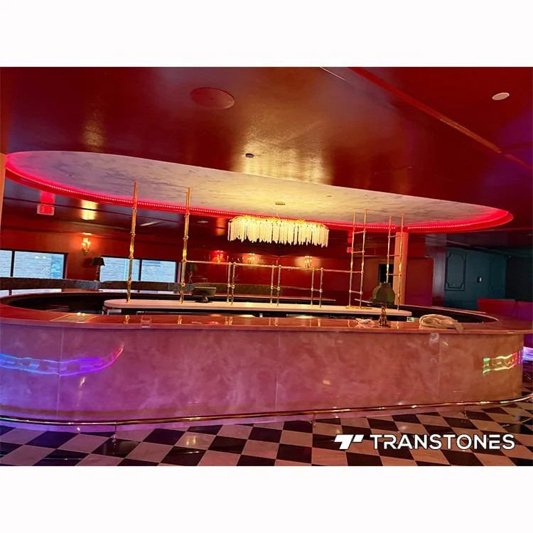 Bar counters, tables, kitchen tops, wall, ceiling, lamp, etc.